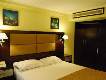 Расположение отеля!!!! отель находится в центре всех центров города! магазины, кафе, дискотеки, все рядом. На самой первой линии от моря- метров 50-100. Песчаный пляж, очищенный от кораллов. Кому нужны кораллы- плывите дальше, в море их много. Кровать комфортная, белье чистое, полотенца для пляжа большие и удобные.