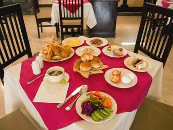 На завтраке, очередь за омлетом и блинчиками ждали 40минут, при заселении просили денег за якобы побольше номер, хотя я такой и оплатил, на ужин попались несвежие салаты, мы с женой отравились, экономия в отеле во всем даже напиток юпи,в баре одна вода была, отель подуставший.