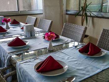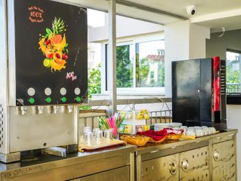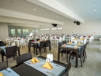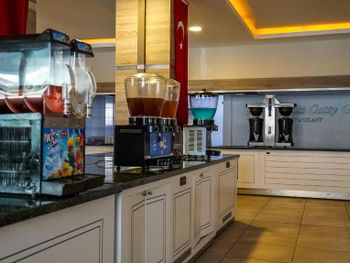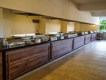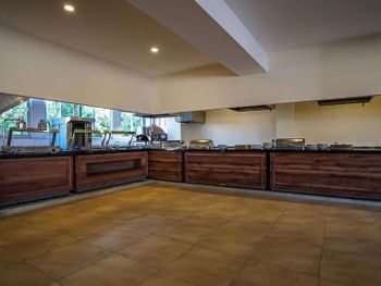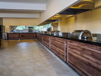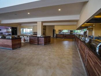 Мы приехали практически к окончанию ужина, персонал на ресепшн предложил успеть поужинать,а после оформить проживание. В ресторане нас радушно встретил персонал и помогал с выбором, чтобы мы успели поесть. И в другие дни выбор мяса, рыбы был разнообразен. Очередей не было, столы всегда убраны и есть места. Бар - вино было весьма приятное, небольшой выбор коктейлей, очереди не было. Все работники дружелюбны.Есть терраса на втором этаже, подъем по эскалатору,что очень удобно.