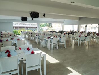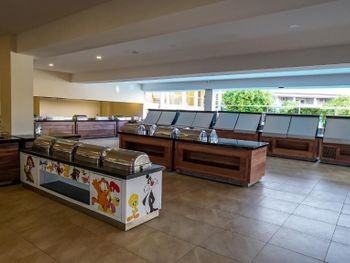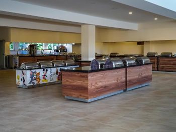 Зона еды - огромная столовка с пластиковыми стульями, уборная в лобби вечно грязная, одна из кабинок не работала и на всех тех кто находится на бассейне или на приеме пищи приходилась одна кабинка женского туалета. Еда посредственна, примерно уровень отеля 2-3 звезд, алкоголь местный, коктейли все за отдельную плату, в основном все подается в пластиковых стаканах. На нас наорали когда мы с бассейна подошли на бар, потому что были в купальнике, а это единственный бар на весь отель😅 так что выныривай одевайся и иди в одежде за напитками если очень хочется)