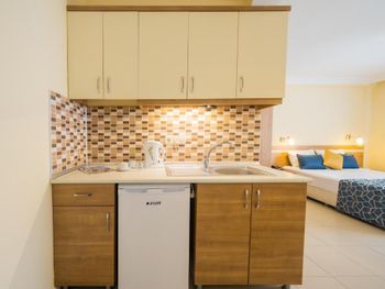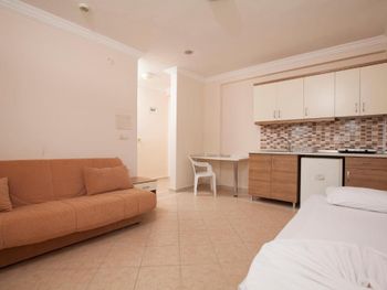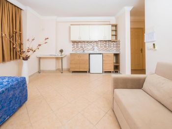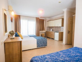 Интернет платный, на ресепшн есть кондиционер, но его не включают, включают вентилятор. Пляж работает только до 18:00, глупее еще ничего не видели... В номере с кухней нет чайника и принадлежностей для готовки. У нас было бронирование без "все включено" и так как не было чайника в номере попросили стакан чая в баре, за что попросили 100 лир..