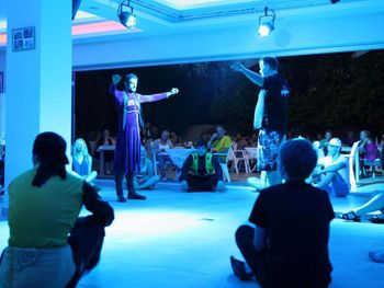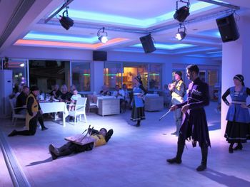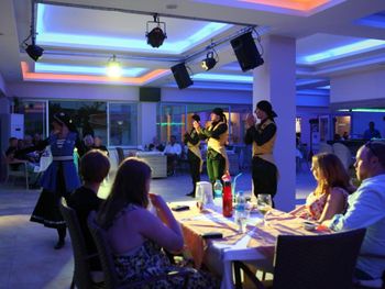 Ну и анимация по вечерам была на высоте. Раз в неделю приглашали танцоров, которые исполняли зажигательные танцы. На территории красивый сад с оливковыми и апельсиновыми деревьями.Порадовало наличие большой лоджии со всей необходимой мебелью, даже бельевыми верёвками,, где можно было сушить бельё.