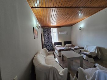 Мы забронировали трехместный номер (придется подниматься по крутой лестнице, если что). В Гугле прочитала отзывы о потолках и грязи. Но такого не было!