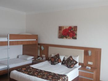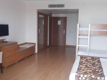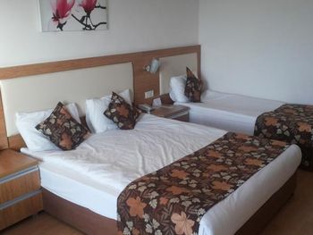 Плюсы этого отеля что он новый и чистый. Персонал приветливый. А вот на рецепшене, очень нахально просили вознаграждения за номер с балконом)) Хотя, по моему, других там и нет) Питание хорошее. Каждый день были фрукты, рыба и птица, разнообразные салаты. Теперь о минусах: Все окна номеров выходят или на концертный зал соседнего отеля от которого такой шум, что мы в номере не могли говорить по скольку не слышали друг друга. или на мусорку которую часов в 6 утра забирают и будят всех гостей очень громким шумом. Я не понимаю как в таких условиях укладывают спать детишек. Вообщем, отдых с детьми крайне не удобен, не смотря на то, что есть водяная горка. На рекламе они показывают горки соседнего отеля. В этом отеле только одна водная горка) Заход в море, очень каменистый. Надо быть крайне осторожной, иначе можно легко переломать ноги. Так что пляж тоже не для детей. А ещё на пляже работают нахальные парни, которые предлагают свои услуги "полёт на парашюте" за минимальную цену, причём деньги сразу не берут. После того как мы полетали, стали говорить совсем о других деньгах, что было крайне не приятно и просто отвратительно. Пришлось идти жаловаться в отель. Так что будьте бдительнее и старайтесь сначала оплатить их услугу. А лучше вообще отказаться))