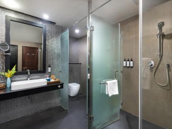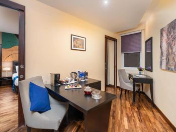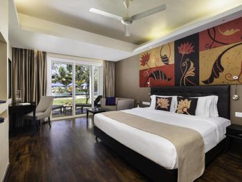 Номера курортного отеля NH Bentota Ceysands в лимонно-зеленых тонах оснащены кондиционером и телевизором с плоским экраном. В числе удобств гостиная зона с диваном и рабочий стол. В распоряжении гостей прилегающая ванная комната.