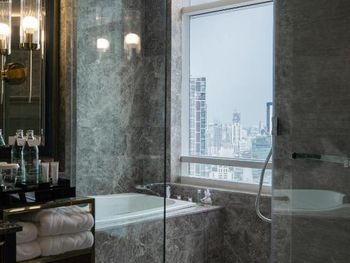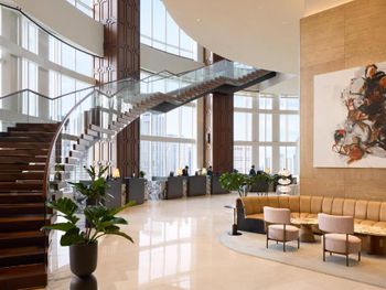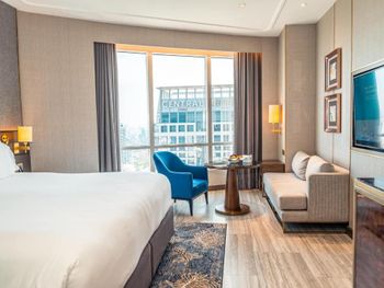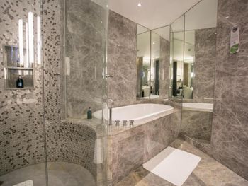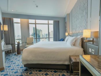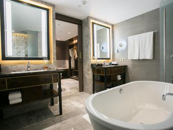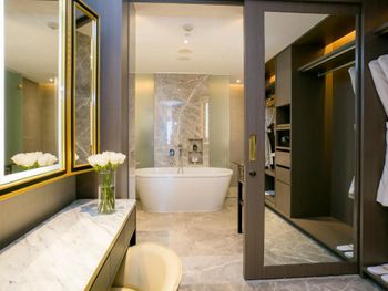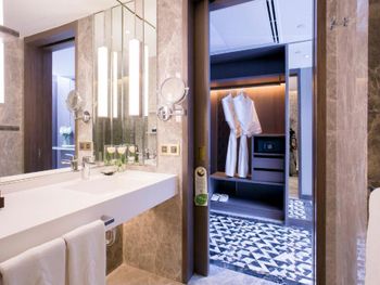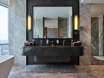 Прекрасное месторасположение , удобная кровать, супер вежливый персонал, вид из окна, великолепный бар и вид на город на 54 этаже. Оч большая , удобная ванная комната.