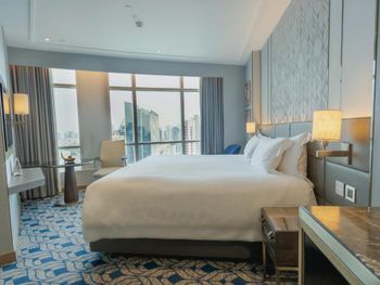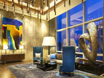 Панорамное окно, отличный завтрак, близость к шопинг центру. Ресторан на 54 этаже с прекрасным видом на город. Хороший климат в номере.