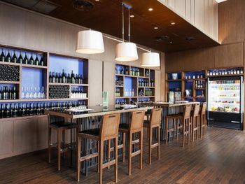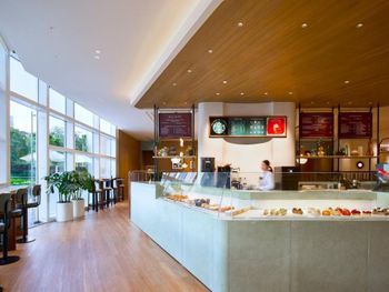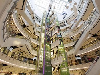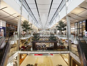 Отель расположен в комплексе зданий огромного торгового цента, достаточно спуститься в лобби, пройти по коридору и на лифте спуститься в ТЦ.