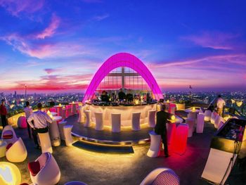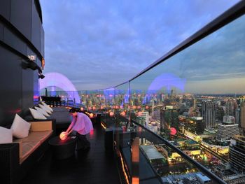 Завтраки, вид из окна (26 этаж), чистота в номере, любезный персонал, расположение отеля (можно через седьмой этаж сразу попасть в ТЦ Central world), бар Red sky на 55 этаже
