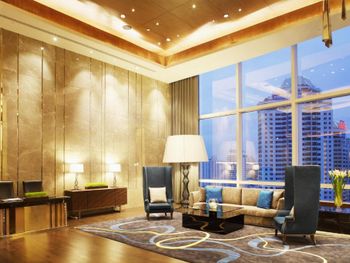 Отель расположен в хорошем ,красивом центре города , в одном здании с большим торговым центром , что очень удобно . Наш номер был на 44-ом этаже с видом на самое высокое здание . Нам очень понравился бассейн под открытым небом , мы каждый день плавали , после прогулок по Бангкок . Завтраки очень вкусные , большой выбор всего в большом просторном ресторане с панорамными окнами и красивым видом . Вид на бесконечный Бангкок из ресторана , с высоты 55-го и 57-го этажа захватывающий , и наблюдали очень красивый закат во время ужина.