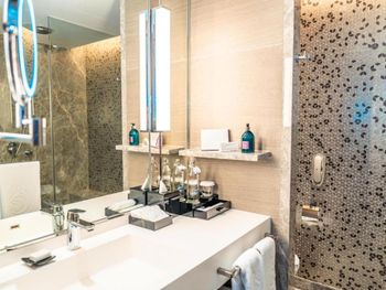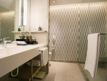 Великолепный отель, номер, душ. Вид из окна 49 этажа просто сказка! Шикарный завтрак в номер. В бассейн не успели сходить, на закат тоже не успели, к сожалению. Но коктейли с видом на 56 этаже были прекрасны.