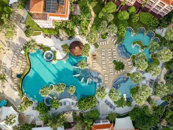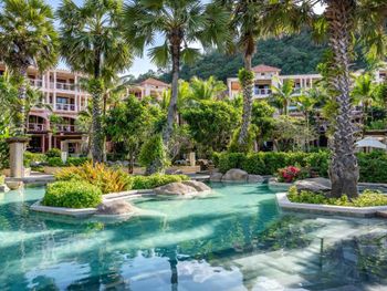 Пятизвездочный отель Centara Grand расположен на фоне живописных зеленых холмов возле пляжа Карон. Окна его номеров выходят на бухту. К услугам гостей ландшафтный аквапарк с 4 открытыми бассейнами.