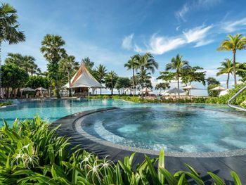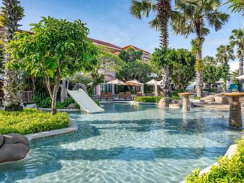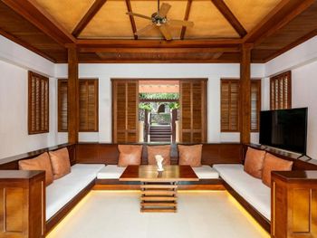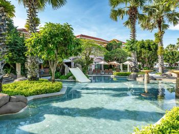 Отель не дотягивает до 5 звезд, когда-то возможно он и был хорош, но эти времена давно прошли, сейчас он очень устарел, все ветхое и требует ремонта. Сотрудники совершенно не клиентоориентированные, особо не стараются, чтобы у вас сложилось хорошее впечатление об отдыхе, вероятно, все и так продается неплохо, поэтому мотивация отсутствует. Изначально нас заселили в номер, где в полу была дыра, заделанная шоколадом, вероятно, чтобы по цвету подходила. Затем мы переехали на виллу. Там было поприличнее, но тоже все очень уставшее, и крайне неудобное. Прозрачные дверцы туалета, дверь душевой, очень тугая и открывающаяся вовнутрь (попробуйте сделать это мокрыми руками и все поймете ). Если ошибиться дверцу намертво заклинивает, и есть вероятность , что сами вы не выберетесь, поэтому душ , находясь одному в номере, принимать не рекомендуется. Из этой же серии практически плоская раковина умывальника. Воду можно включать только тонкой струйкой, иначе вода летит в лицо , мы постоянно об этом забывали , поэтому вечно ходили мокрые. В ресторане на завтрак никто не встречает, надо самим бродить в поисках свободного столика.....Также неприятно удивила ситуация с лежаками - мы уже очень давно не сталкивались с ситуацией , когда в 8 утра отдыхающие бегут занимать лежаки, а потом эти лежаки стоят не используемые, никто из работников не убирает с них полотенца до вечера, так что те, кому не хватило места могут только кусать себе локти, расположившись на травке. А вишенкой на торте был момент выезда, после того, как мы окончательно рассчитались , сотрудники демонстративно потеряли к нам всякий интерес, мы трижды просили вызвать нам такси, в итоге через 40 минут пытались нас с 2 детьми и чемоданами отправить на туктуке... Итог - отель не стоит своих денег, мы сюда точно не вернемся