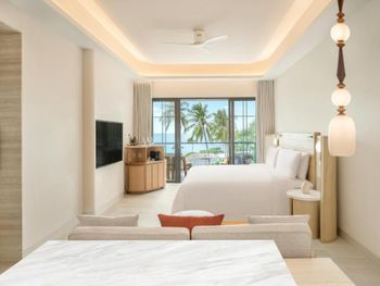 Отдыхали 10 дней в июне 2025 г. Прилетели утром, заселили по приезду, также продлили номер бесплатно к нашему выезду на 2 часа. От аэропорта буквально минут 15. 1) Номер Garden с двумя очень удобными кроватями, спалось прекрасно. Душевая зона также удобная. Порадовал бесплатный мини-бар. 2) Пляж-супер. Чистый, комфортный заход в воду, вода прозрачная. Всегда есть свободные лежаки, всем хватает места. Обслуживание на пляже/у бассейна-отличное. Вода-бесплатно, сотрудник подливает, когда кончается. 3) Две зоны бассейнов, одна из них -только для взрослых. Бассейны неглубокие, вода теплая. 4) По питанию : у нас были включены завтраки, вкусно, свежие фрукты в наличии, выбор большой блюд. Обедали обычно у бассейна, также заказывали на ужин room-сервис и ели в основном ресторане. Все на достойном уровне. 5) Рядом есть супермаркеты, аптеки, обменники, кафе и.т.д. До ТЦ Central Samui -20 минут пешком. 6) Персонал улыбчивый, дружелюбный, всегда стараются помочь. 7) Спа отличное-пробовали тайский и аромамассаж. Идеальный отель для спокойного relax-отдыха.
