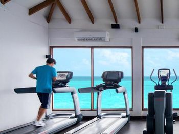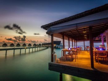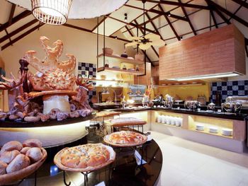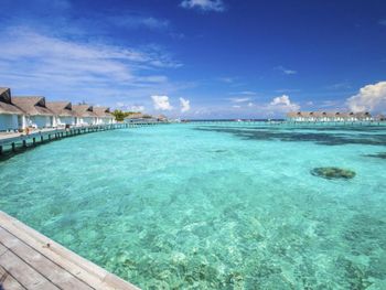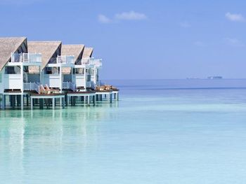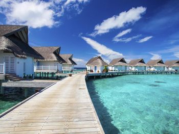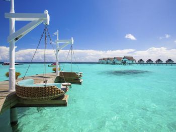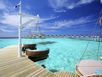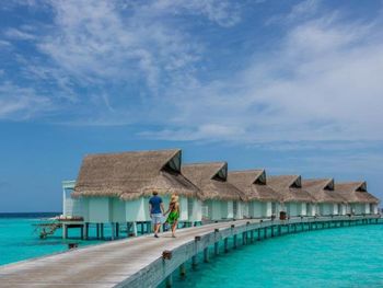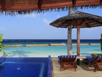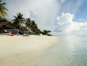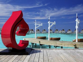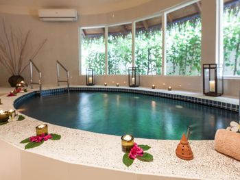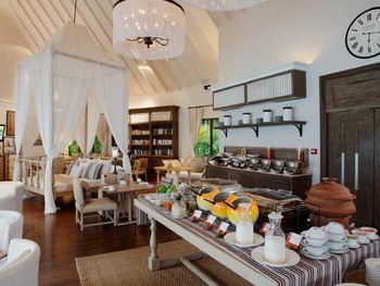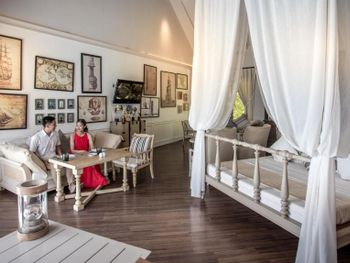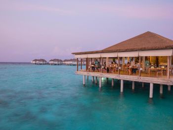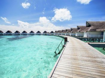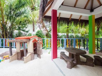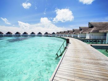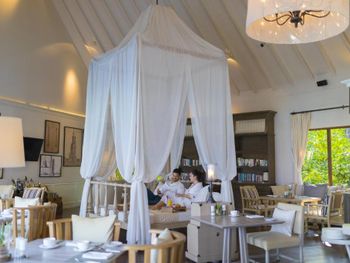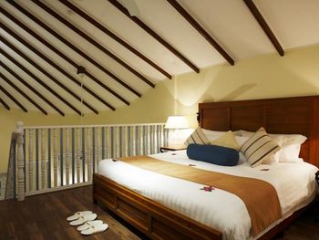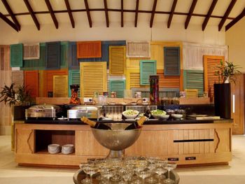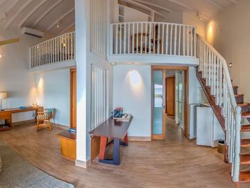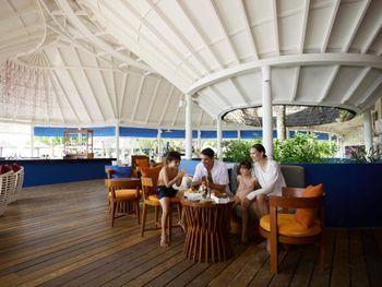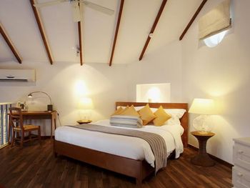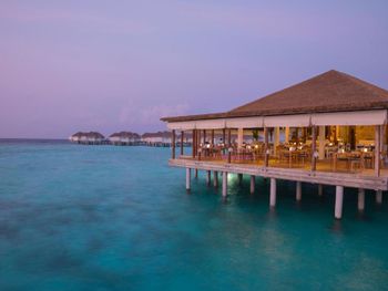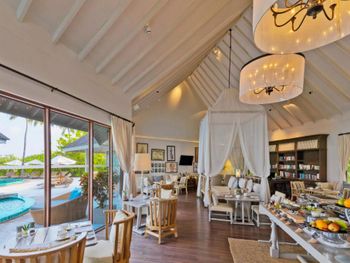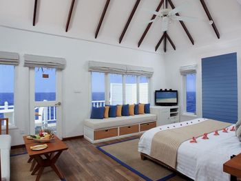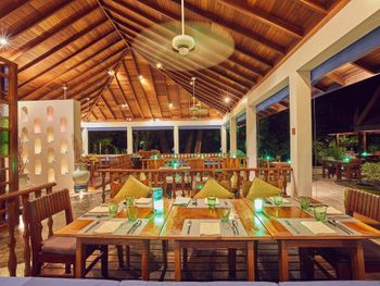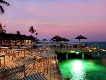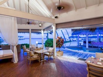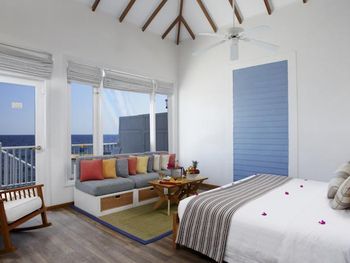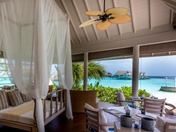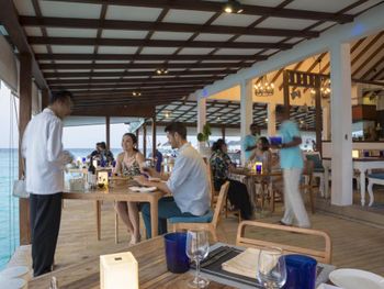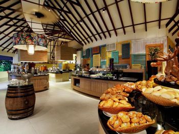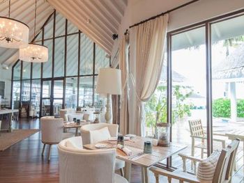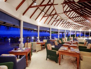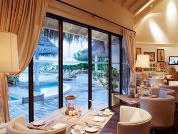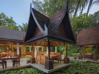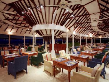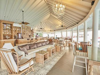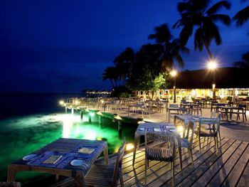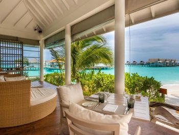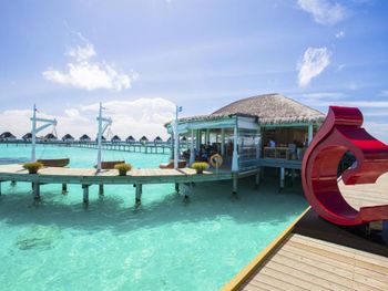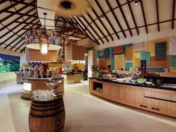 В ресторане в основном индийское питание. Было оплачено все включено. мы пожалели об этом. так как Можно питаться только в одном из трёх ресторанов. Перед виллой купаться нельзя. До волнореза - 50 метров стоячей воды - при отливе Вода уходит и оголяется неприглядное илистое с камнями дно. Воды по колено. Водоём для детёнышей акул. Маленькая территория. Купаться можно только у чужих домиков, где волнорезы подальше стоят от вилл. Русскоговорящий гид (не помню имя этой девушки) Ничего не решает... Обращаться к ней - бесполезно. у нее одна оговорка на все претензии - у нас всем все нравится! Наш тариф был невозвратный. Иначе бы сразу уехали с этого острова. Возле нашей приватной якобы зоны постоянно были шумные компании с детьми - целыми семействами приходили те отдыхающие, которые были в домиках на воде, приходили всем семейством к нашей вилле и с музыкой и танцами плюхались в этой луже с детьми перед нами. Никакой приватности. Курорт с почти отсутствующими местами для купания. Кое как выдержали этот отдых ( невозвратный тариф) жалко было деньги терять. Переехали в соседний Отель. И были счастливы от сравнения. В де люксе мы действительно отлично провели время. И море там другое... и соотношение цена- качество. сюда больше не приедем точно. встретили плохо. заселялись 3 часа. от первого домика отказались, так как был рядом запах канализации и гора камней в глине вместо моря. Через 3 часа переселили в другой домик, где хоть запаха не было, так как хоть небольшая лужа от моря была перед виллой.