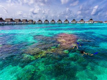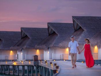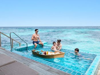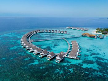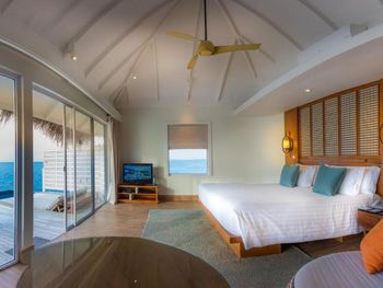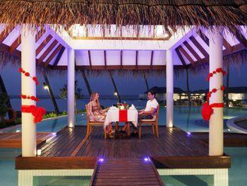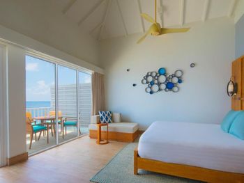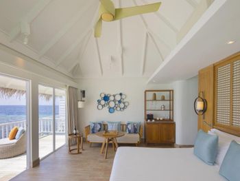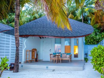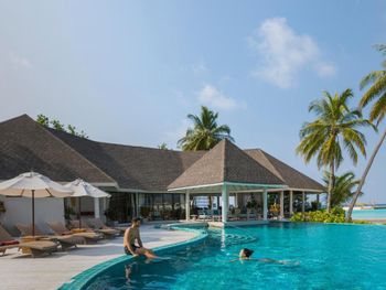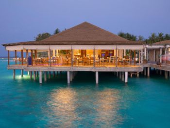 Замечательный отель. Мы очень рады были здесь побывать. Красивый остров, комфортные бунгало. Доброжелательный и отзывчивый персонал. Разнообразная и очень вкусная еда в ресторане с живой музыкой. При питании полупансион на ужин включены напитки. Можно заказать один алкогольный (вино, коктейли, пиво и т.д.) и один безалкогольный. Они были очень кстати. Очень красивый домашний риф с разноцветными коралловыми рыбами, рифовыми акулами, скатами. Даже удавалось увидеть несколько раз мант и морских черепах. Каждый вечер в 18-00 к бару приплывают большие ржавые акулы и два огромных ската чтобы полакомиться свежей рыбой, которой их кормят. Иногда даже мурену удавалось увидеть. Поразила клиентоориентированность отеля. Хотелось бы отметить особой благодарностью менеджера данного отеля по имени MADU. Нам удалось пожить на двух водных виллах. На водной вилле Восход и на водной вилле с бассейном. Каждая из них подарила нам незабываемые эмоции. Данный остров предлагает множество замечательных локаций, которые очень фотогиеничны. Нам удалось сделать много красивых фотографий, которые будут напоминать о прекрасно проведённом времени. Также произвел хорошее впечатление Итальянский ресторан, особенно, морскими обитателями вокруг ( которые доедают все, что не доел ты). На острове присутствует Лонж с кондиционерами, туалетами, чаем и диванами. Где можно комфортно провести время как до заселения так и после. Это отель, куда хотелось бы вернуться вновь.