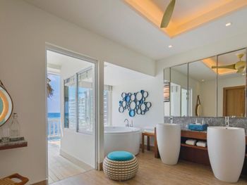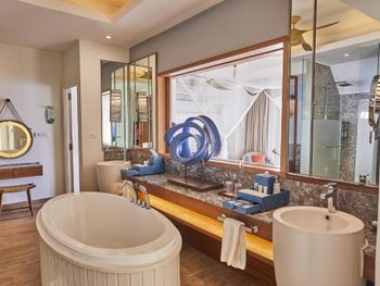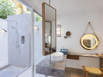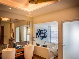 Очень впечатлили виллы на пляже, это практически 2-х этажный дом. И виллы на воде, все идеально подобрано в интерьере. Красивый душ под открытым небом. Сам отель очень красивый. Персонал вежливый. Был инцидент, но он был исправлен. Еда вкусная и разнообразная.