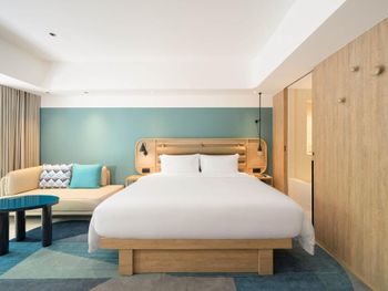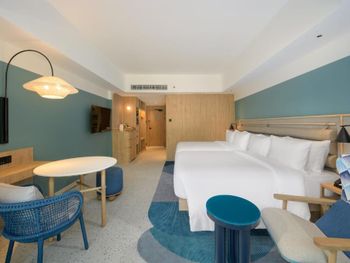 Красивый, современный отель. Удобное расположение. Прекрасный персонал. Чистые, просторные номера. Каждый день уборка. Понравилось, что в номере имеется небольшая гардеробная, удобно спрятать чемодан и развесить одежду. На балконе сушилка для купальников. Вкусные, разнообразные завтраки. Хороший кофе, что немало важно. Обязательно покупайте пакет завтраков, отдельно каждый день платить сильно не выгодно. В каждом корпусе бассейн с баром. Отдельно есть детский бассейн с горкой. Несколько ресторанов, но мы в них небыли. Спортзал. Рядом с отелем бары, кафе, массажные салоны, магазины, 7/11. До моря минут 9.