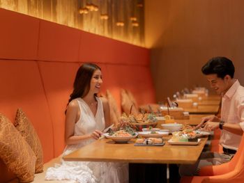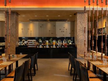 Гостей приглашают посетить один из ресторанов курортного отеля Centra by Centara Maris Jomtien, где можно отведать блюда тайской и интернациональной кухни. Напитки можно заказать в баре у бассейна. Производится доставка еды и напитков в номер.