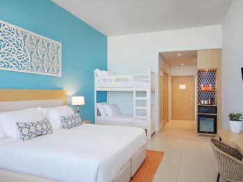 Имейте ввиду, что если вы не берете "все включено", то напитки на завтрак оплачиваются отдельно (для меня это было неожиданно). Так прописано у них в брошюре. Но по факту, никто не контролирует этот момент, потому как все напитки во время завтраков доступны для самообслуживания. На второй день на ужин выбор был не очень и совсем не вкусно. Нам повезло, что останавливались всего на 4 ночи. В последующие дни ужинали в городе или заказывали в номер сэндвичи. Как-то на завтрак были грубо остановлены молодым человеком, который провожал гостей до стола. И грубо указал дождаться своей очереди, хотя мы заходили с другого входа и там никого не было (там два входа). Водные горки рассчитаны на возраст до лет 8. Детям постарше придется поскучать. Мало водных развлечений на пляже.