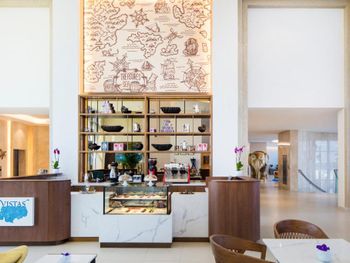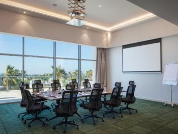 Благоустройство в отеле на высшем уровне, особенно развлечения для детей, ребенок в восторге. Просторные номера с панорамой, новый чистый просторный отель. Если приехал раньше чек ина, то есть лаунж.