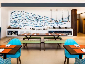 Большая очередь на ресепшене для заселение chek in, у нас было полный пансион, напитки были платными кроме во время завтрака, напитки очень дорого 22 дирхамов маленькая банка, это 6$ за 250мл колы, ужасно дорого продают, а хотели собой принести напиток а там не разрешают. Нам не понравилось официант из тайской кухни Suan bean, мы зашлт в 14:00, людей было мало, хотели сидеть на место где 6 стульев так как нас четверо, один худой официант нас настаивал пересесть на другое место, хотя возле нас сидела одна женщина на столе где 6 стульев, ей ничего не говорить а нас с детьми заставил поменять место зотя все были пустими, после этого мы там не обедали, пошли в Sheesh, там хороший персонал!
