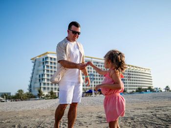 Номера и отель очень свежие. Уборка в номерах отличная, без нареканий. От Персидского залива не стоит ждать многого, но пожалуй лучше чем ничего. На пляже и на территории много активностей. Близко от аэропорта, что плюс, но самолеты будут регулярно взлетать и садиться над головой. Ночью в номере их не слышно, днем детям нравится)