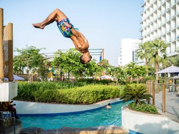 Много развлечений для детей на разные возраста - бассейны, горки. Бассейны подогреваются. Неплохой выбор еды. Приветливый персонал в тайском стиле.