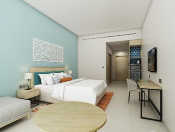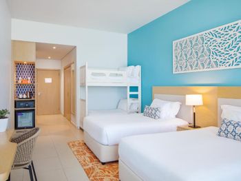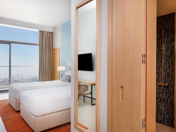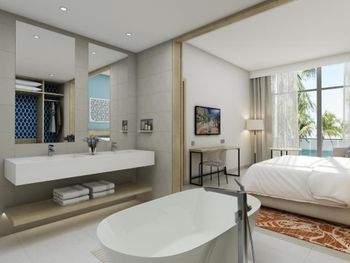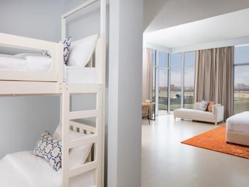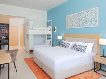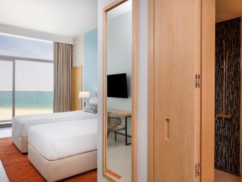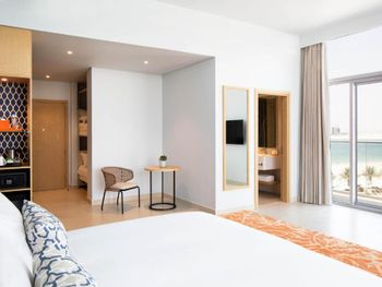Номера и отель очень свежие. Уборка в номерах отличная, без нареканий. От Персидского залива не стоит ждать многого, но пожалуй лучше чем ничего. На пляже и на территории много активностей. Близко от аэропорта, что плюс, но самолеты будут регулярно взлетать и садиться над головой. Ночью в номере их не слышно, днем детям нравится)