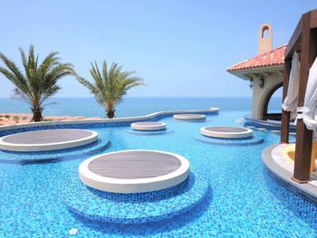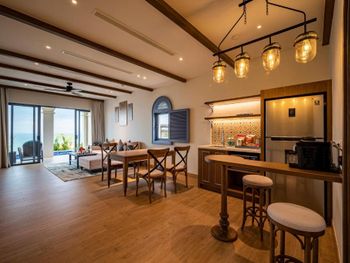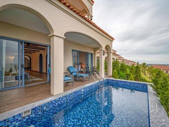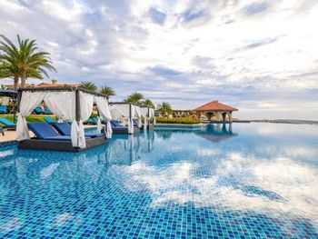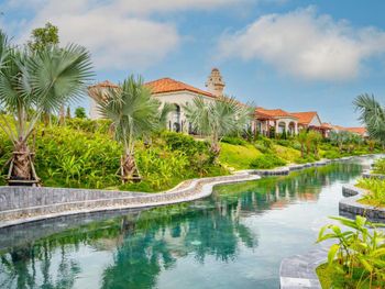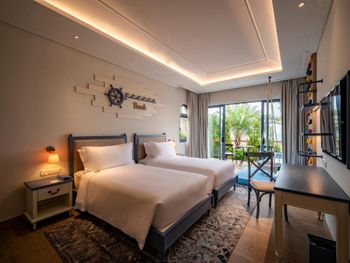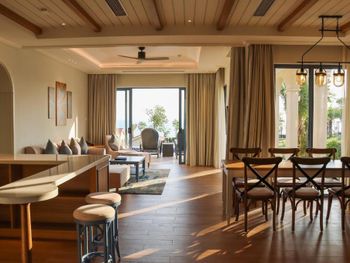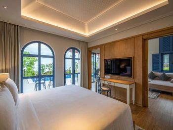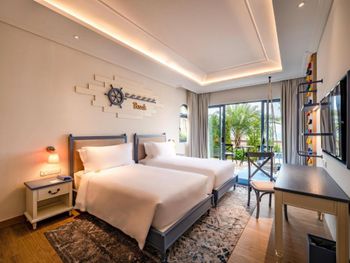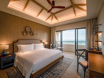 в бронировании был обещан новогодний Гала-ужин при проживании с 30 по 1 или 31 по 2. но по факту его отказались предоставлять бесплатно. привет этом номера в эти дни стоили баснословных денег. в целом, за все в отеле придется платить. цены в ресторане сильно завышены, а свежих морепродуктов (которых вокруг за копейке при вас приготовят) у ресторанов нет. боулинг вам будет стоить 500 000 донгов, Уборка в номерах оставляет желать лучшего. мы жили в вилле с бассейном и с крыши постоянно сыпались птичьи какашки. при этом бассейн постоянно избавляли от какашек, а бортики вокруг бассейна игнорировали. унитазы в номере не мыли на протяжении трёх дней, кофе для кофемашины пополняли только по требованию. дополнительное одеяло постоянно куда-то уносили из взрослой спальни. в общем, сервиса 5* как в других странах тут не ждите. удивительно, что нет своего выхода к морю или даже трансфера.