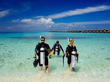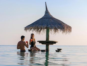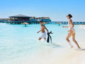Это была наша первая поездка на Мальдивы. Я знал, что не сезон, это был август, но решил рискнуть. Результат: сильные бури ночью, домики на воде качает, ветер воет, реально страшновато. Но по правде сказать, напрягало это одного меня)) я спрашивал у наших соседей- у них всё супер, нам с женой было не комфортно по ночам. Но это же не вина гостиницы, не повезло с погодой. Днём погода была отличная, грозы только ночью, хотя дожди тёплые. Поэтому, если едете в несезон, то рекомендую бунгало на берегу. Мы 4 ночи провели на воде, а потом 3 на острове. Совсем разные ощущения, ночью тихо и ничего не качает на суше. На воде конечно дороже и комфортнее, но только если нет грозы. В целом отдыхом очень довольны. Гостиницу однозначно рекомендую, только обращайте внимание на погоду