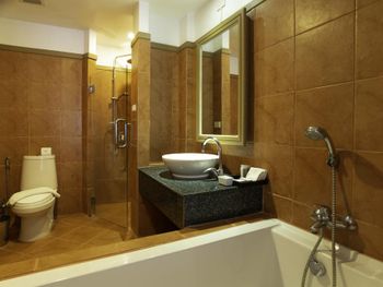 Большой номер, вольная ванная комната, где есть и душ и ванная. Достаточно чисто. Персонал приветливый.