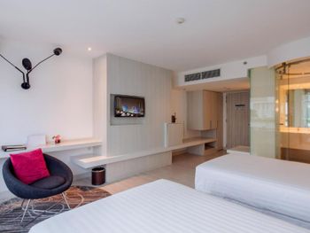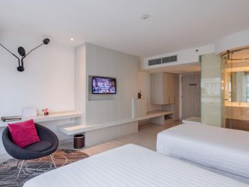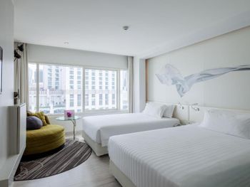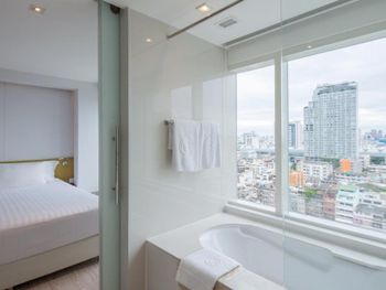 Добротный отель расположенный начиная с 9 этажа торгового центра, с тихими номерами и шикораном завтраком, правда скорее в азиатском стиле. На крыше есть еще один открытый ресторан, где вечером можно перекусить с видом на ночной Бангкок. Отмечу очень удобную кровать и санузел с прозрачной стенкой (есть штора на случай совместного проживания)