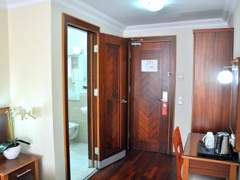 Мы жили в номере Deluxe на шестом этаже, с достаточно живописным видом из окна на близлежащие улицы и пролив вдалеке - ночью действительно очень красиво. Единственный момент, который можно было бы поправить владельцам отеля - регулировать доступ персонала к соседней двери, ведущей в подсобное помещение. По утрам до времени завтрака на этаже становилось шумновато от хлопанья дверей, хотя в целом любая проблема или вопрос решались оперативно.