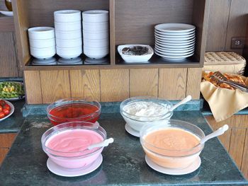 на завтрак были только хлопья, сосиски и колбаса неапппетитного вида, очень соленый сыр и меленькие кусочки огурцов с помидорами. и так каждый день.