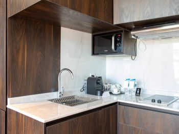 В определенных номерах также есть мини-кухня с холодильником, духовкой и микроволновой печью.