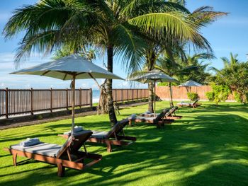 Насекомые в душе. Капала из кондиционера вода. Немного не ухоженная территория, был мусор от сигарет на нашей террасе. Пляж не предназначен для купания, но океан великолепен.