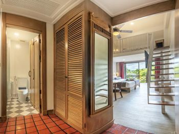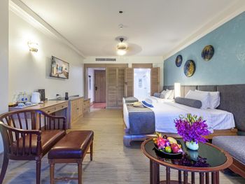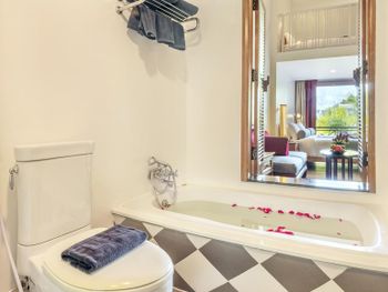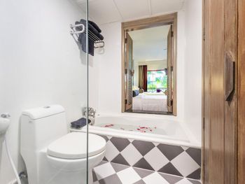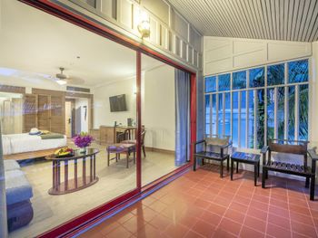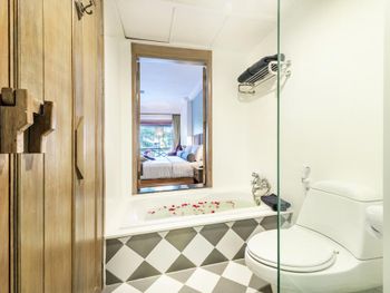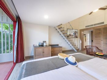 Номера с деревянным полом обставлены мебелью в тайском стиле и оснащены кондиционером и небольшой гостиной зоной. Также предоставляются кабельное телевидение, сейф и принадлежности для чая/кофе. В собственной ванной комнате есть ванна и отдельный душ.