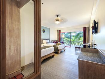 Отличное местоположение, свободная, удобная парковка, красивый лобби, вкусный и разнообразный завтрак! Чистые и комфортабельные номера (белоснежная постель. Очень зеленая территория. Мы отдыхали в этом отеле в январе, и сейчас в августе опять приехали на Краби. Хотели заселиться в другом отеле для разнообразия. Но объездив 4 отеля вокруг, все же решили вернуться сюда вновь и не пожалели. Здесь 2 больших бассейна, а вечером играет живая музыка. Смело берите любой номер, все номера расположены окнами на бассейн. Через букинг было дешевле чем на ресепшене. У нас 2х этажный семейный номер. Рекомендую!