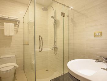 Бронировали 3 ночи в Улучшенном двухместном номере с 1 кроватью или 2 отдельными кроватями, заявлено 28 кв.м., но это был шкаф, а не номер, метров на 15, БЕЗ ОКОН! Как можно было заселить семью с грудным ребенком в такой номер?! На Booking.com на странице отеля фотографий этого номера нет. Как минимум освещение в таком номере должно было быть задумано получше, потому как в такой полутьме мы даже сфотографировать номер не смогли. Мы жили на 5 этаже, лифт есть, но на этаже все равно были ступеньки вниз к номерам, приходилось поднимать и опускать коляску. Лифт отвратительно грязный и вонючий. Слышимость невозможная, т.к. дверь в номер с щелями у потолка и пола, рядом дороги и кафе шумят до самого утра, ощущение, что рядом парк аттракционов. Непосредственно рядом с отелем магазинов нет. Санузел устаревший, пожелтевший, видавший в своей жизни много чего. В ванной комнате неприятный запах, вопрос к уборщицам. Полотенца пожелтевшие. Мы сбежали из этого отеля через день. Это не 4* звезды, а guesthouse.