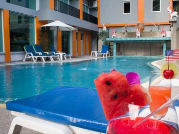 Отдыхали с мужем и грудным ребенком, отель выбирали по отзывам и расположению. До пляжа с коляской минут 5-7. Завтрак достаточно разнообразный. Яичница, 2 вида овощей, 2 вида фруктов, суп-бульон, рис, лапша, крылышки, чай/кофе. Вкус кофе очень странный, не рискнула допить. Обедали в ресторане, понравилась лапша пад-тай и смузи. Цены практически как в кафе на улице.