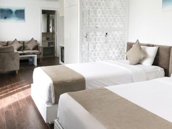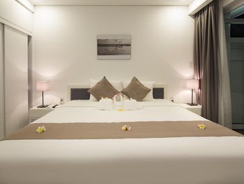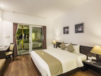 По приезду предложили апартаменты на территории отеля. Две комнаты с полноценными кроватями, сейф, телевизоры в каждой комнате и гостиной, большой холодильник, диван, стол стулья, балкон с шикарным видом. Нам втроём (ребёнку 7 лет) было удивительно удобно!!! Уборка ежедневная - смена белья, полотенец, моют полы. Вода кофе пополняют ежедневно. На территории два чистых бассейна (одни возле апартаментов, другой самого отеля). Электромобили возят по всему острову, по определённому времени увозят на пляж и в центр. Не успели на мобиль, такси в 70-80 т и вы в центре. Кушали в морском ресторане (дешевле, чем Кубера). Каждый вечер проходят свадьбы - очень приятно смотреть на такие добрые церемонии. В 21 час гости уже разъезжаются. Мы почти не замечали шума и какого то дискомфорта. Если хотите жить более уединенно - выбирайте апартаменты. Персонал очень отзывчив. Гугл переводчик очень помогает в общении. Ходили на спа с дочкой при отеле. Сказочно. Бунгало на берегу реки, профессиональные девушки подарили настоящий Релакс. Вай Фай работает отменно, удаленно выходила на работу без проблем, ребёнок смотрела ютюб, мы вечером смотрели кино (среднее качество ставили).