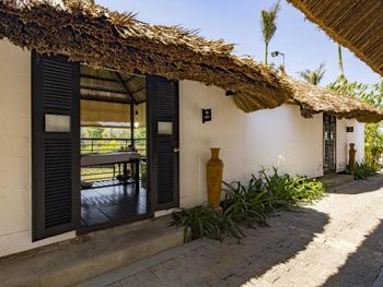 Отель расположен на двух островах. В отличии от центральной части у побережья, здесь реально тихо и спокойно. Это огромный плюс. До набережной можно без проблем доехать, мы брали байк в компании, которая сотрудничает с отелем, его доставили в гостиницу и от туда же забрали. Было удобно.