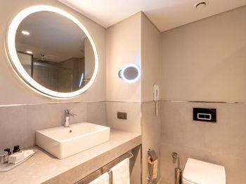 Дверцы в душе не закрывались, много воды лилось на пол, приходилось вытирать постоянно. В одном из бассейнов слишком много реагентов, вода на вкус супер кислая. В один из дней пол вокруг бассейна не был вымыт, грязновато. Хотя сам бассейн и вода очень чистые. WiFi бесплатный только в лобби, в номерах за дополнительную плату. Но это во всех больших отелях так. Вряд ли можно считать недостатком.