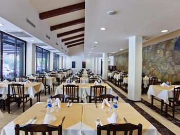 В главном ресторане для гостей сервируется шведский стол, где вам будет предложен хлеб, суп, горячие блюда, фрукты и десерты. Здесь установлена печь для выпекания пиццы, а также к услугам гостей салат-бар. В ресторанах с обслуживанием по меню вы сможете попробовать блюда из морепродуктов и блюда турецкой кухни.