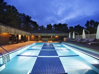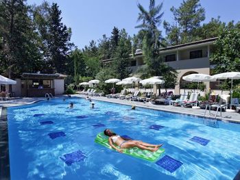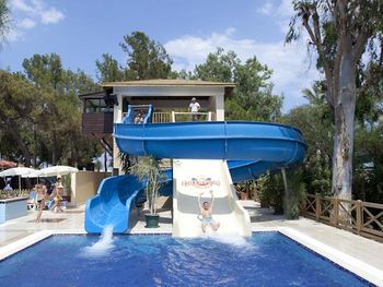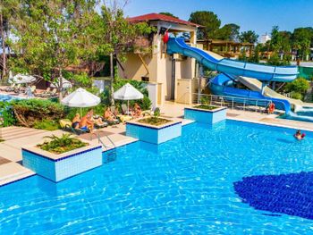 Жили 2 ночи как стартовый релакс с all-inclusive перед другими точками Турции, дольше уже будет скучновато. Всё очень понравилось. Приятный отель. Большая территория, есть где пройтись в дневную жару. Жилые корпусы в сосновом лесу, с утра поют птицы, окна выходят с видом на лес, находятся у тени и в течении дня солнце не жарит в окно. На территории бегает много птичьей живности, дети были в восторге, бегали за цыплятами, пару раз их ловили, находили кладки яиц. Есть отдельный тихий бассейн, где запрещен вход с детьми для ценителей тишины. В море особо не ходили, у бассейна стандартный бар с пивом и коктейлями алко/без. Рядом снек бар с хорошим кофе из кофемашины и бариста, качественными вкусняшками. Бассейны чистят по вечерам, у детей не было никаких проблем из-за бассейна в плане здоровья. Дочь чувствительна к хлорке, хлорированность была в норме. Вода не холодная, но и не горячая, для бассейна самое то.