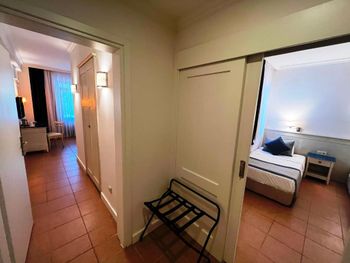 Первая встреча была просто анекдотичной. После быстрой регистрации и оплаты номера, забронированного через Booking, нас должен был проводить в номер носильщик. Решив разом обслужить нескольких гостей, он уложил на маленькую тележку сразу пять чемоданов и сумок. Через несколько метров они упали, носильщик снова уложил их в стопку и снова уронил. Опасаясь за сохранность своих вещей, я предпочел донести свои сумки сам. В номере обнаружились следы пребывания предыдущих постояльцев, зато не было инструкции к сейфу, за которой пришлось вернуться на ресепшен. Позже пришлось сходить туда еще раз, чтобы заменить батарейки в пульте от кондиционера. Сам кондиционер охлаждал хорошо, но поток воздуха был очень пыльным, поэтому старались лишний раз его не включать. Позже выяснилось, что не горят лампы освещения коридора. После жалобы на ресепшен две лампы поменяли, но третья так и осталась неисправной. Кроме того, однажды утром в номере на пару часов пропала вода. К счастью, лифт в здании не ломался, а лифт в главный ресторан за две недели был сломан только однажды.