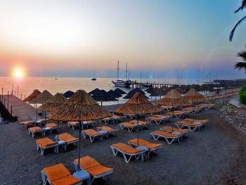 плохой пляж и грязные лежаки .плохая уборка территории .уборка в номерах приличная когда скажешь .хозяину может нравиться хождение птиц по территории павлин арет с утра раннего до вечера не дает отдыхать . еда в ресторане безобранное .пригласили в турецкий ресторан просто было противно подали холодные блюда из основного ресторана зачем позвали не понятно просто позор туркам .впечатление ужасные .пытаються старшие администраторы сделать что то лучше Мустофа стараеться ну он один что то исправляет . заявлено было мини бар его вообще нет ставят бутылку воды .интернет платный который безобразно работает . отель не советую ни кому.