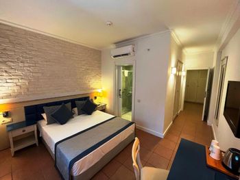 Интернет платный и сейф, на все включено в Турции это дикость. Оплатила сейф, услугу так и не предоставили, при выезде просила вернуть деньги . Сотрудники на ресепшн абсолютно не компетентные. Питание очень скромное, экономное и не вкусное . Все напитки разливные, кроме воды . Мороженое только в момент приема пищи и не в упаковке. На завтрак спасала каша, на ужин в некоторые дни везло и было нормальное мясо и курица , один раз были кальмары. Снек бар открывается в 12.30 , в это же время начинается обед , для тех , кто завтракает в 7-8 утра , до обеда или перекуса долго ждать , ребёнок уже был голоден . Приходилось набирать печенья с завтрака . В отеле одни пожилые европейцы, развлечений нет, анимации нет . Детям там скучно , разве что Кошки забавляют. Молодым парам тем более не стоит ехать в этот отель .
