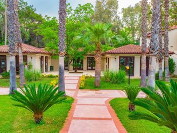 Очень красивая территория.Вся утопает в зелени.Сосны,мандарины,лимоны и т.д.Красивые ландшафные композиции.Бегают куры,утки,и даже павлин.Очень красивый вид из моря-сплошная гряда гор. Отель состоит из отдельных вилл в средиземноморском стиле.Это красиво. В общем,если вам не нужны развлечения,сервис и вкусная еда,то остальное все замечательно,и будет радовать глаз каждую минуту.
